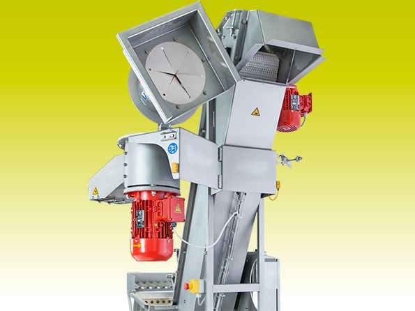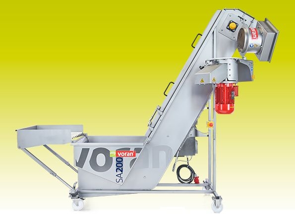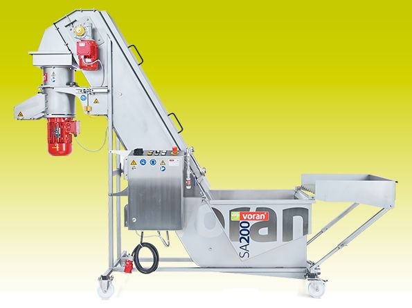 Transportieris ar mazgāšanas kasti un smalcināšanas iekārtu.